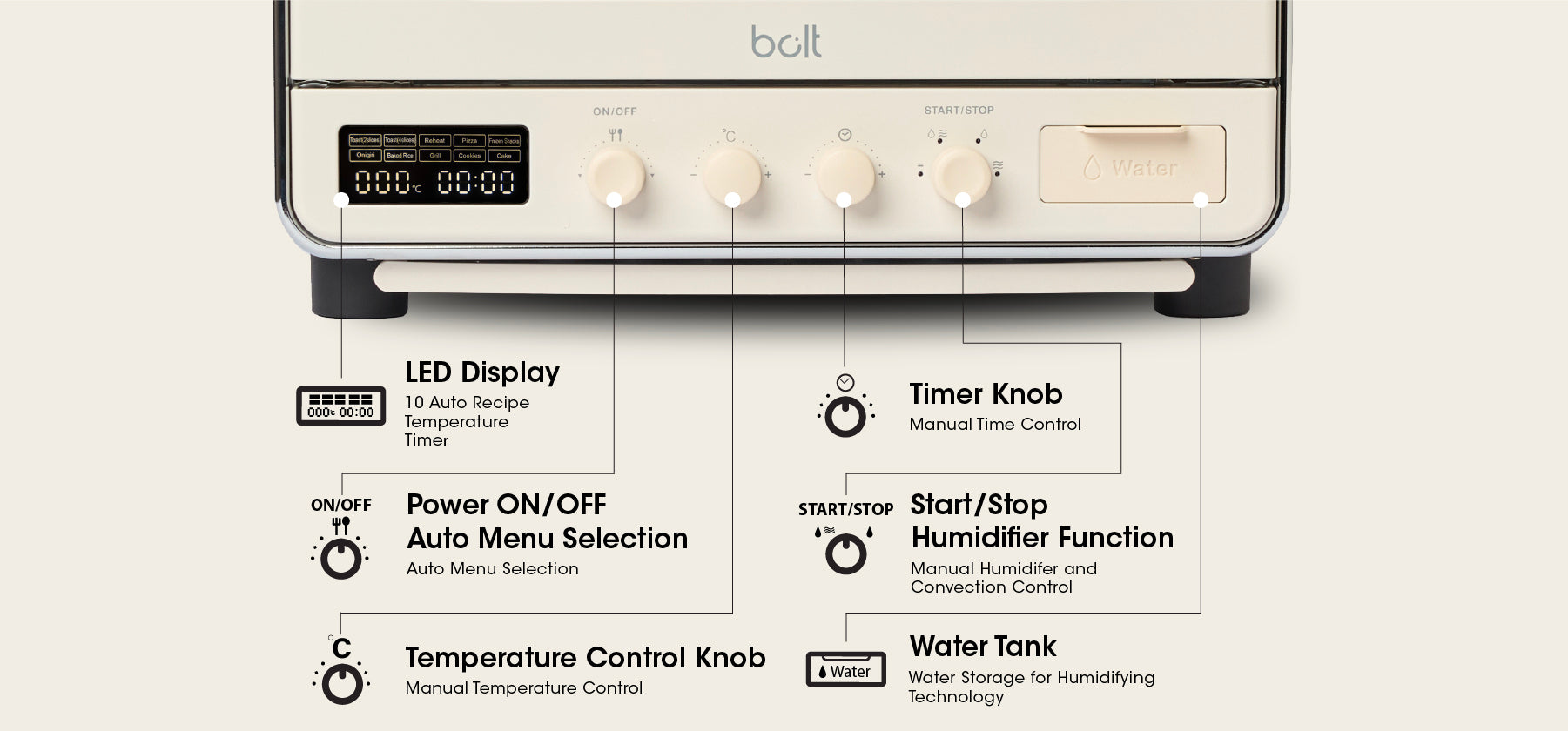 The humidifying technology helps to prevent bread from drying out and retains moisture, ensuring a golden brown crisp on the outside and soft fluffy texture on the inside.