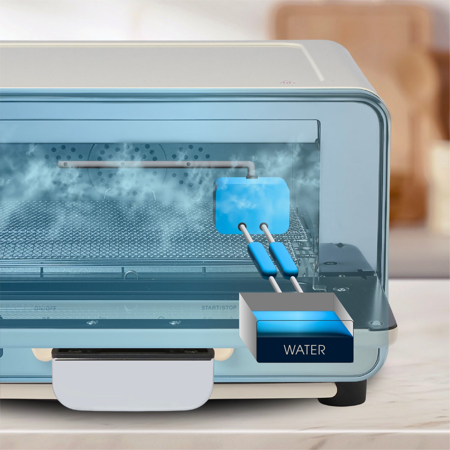 With just a little amount of water, it produces a thin layer of steam through the humidifier to keep the food from drying out. In which creating the perfect balance of crisp and moisture.